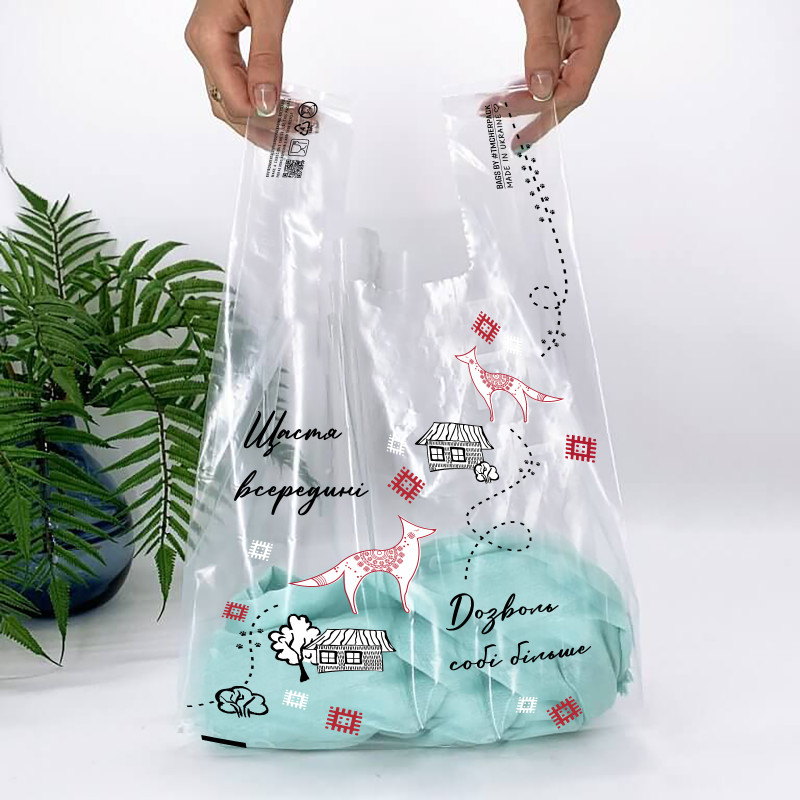 Пакет майка 34(2х8)х57см, 51мкм, (50 шт.), LDPE харчовий, прозорий, "ETHNO"