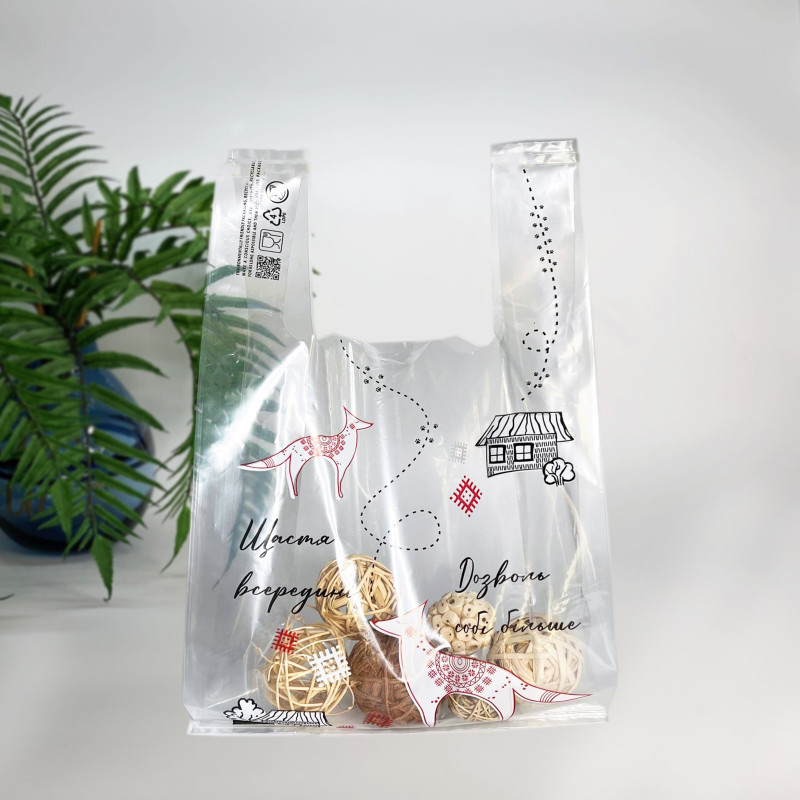 Пакет майка,25(2х6)х40,51мкм,(50 шт.),LDPE харчовий,прозорий, "ETHNO"